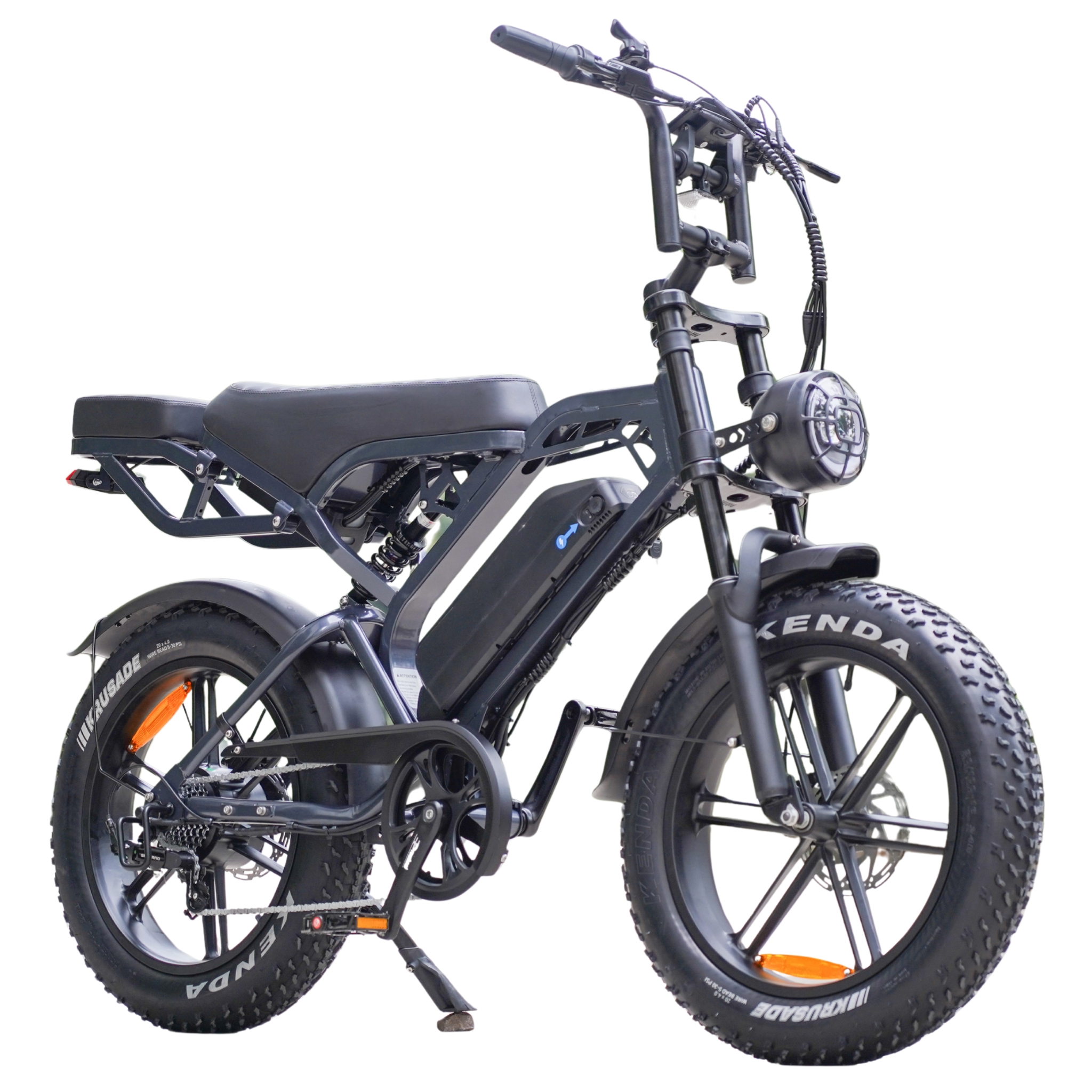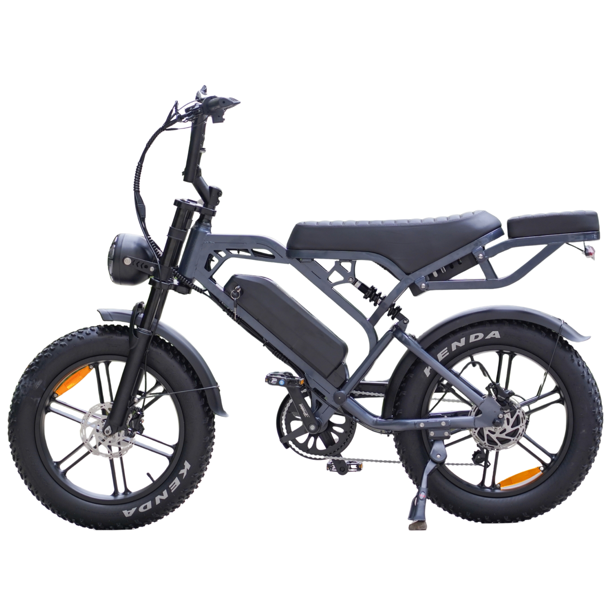 Geniet van gezamenlijke avonturen met de V20 Fatbike, die geschikt is voor twee personen na uitbreiding met achterzit. Ervaar het plezier van het ontdekken van nieuwe paden en maak van elke rit een onvergetelijk avontuur. De Fatbike is veelzijdig en krachtig, klaar om je mee te nemen op avontuur, zonder concessies te doen aan stijl en prestatie