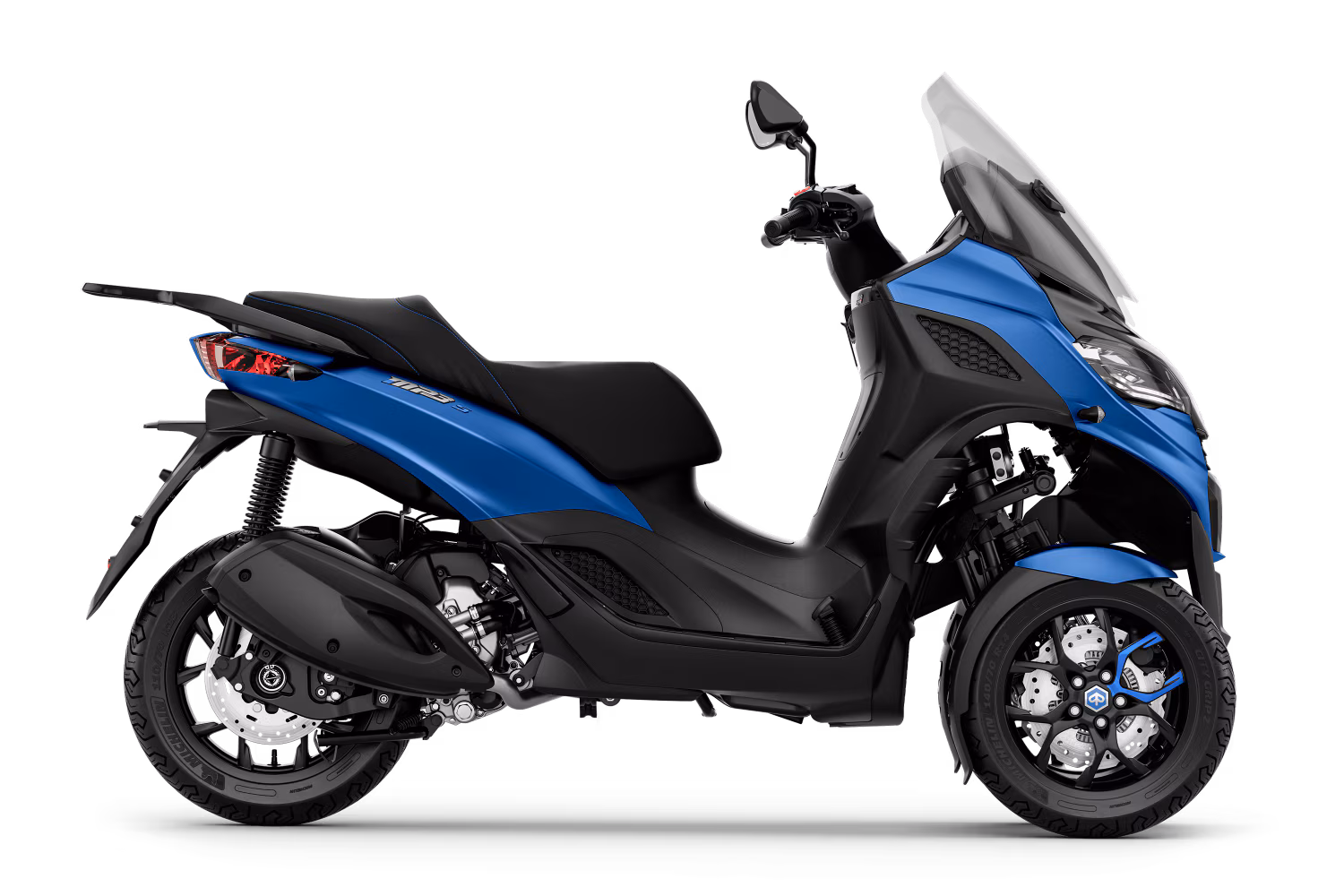 Met zijn modern gevormde voorkant en kleuren die het gestroomlijnde, op automotive geïnspireerde ontwerp benadrukken, trekt de Piaggio MP3 310 Sport overal de aandacht. Details zoals blauwe stiknaden op het zadel en decals op de zwarte velgen van de voorwielen vallen op, terwijl een mix van matzwarte en glanzend zwarte afwerkingen en de treeplanken met aluminium inleg de sportieve look compleet maken. Deze perfecte samensmelting van elegantie en kracht, die is toegestaan met een B-rijbewijs*, is ontworpen voor rijders die op zoek zijn naar stijl en prestaties in een voertuig dat al uniek is in de wereld.